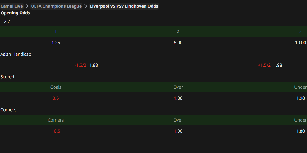UEFA Champions League : Liverpool vs. PSV Eindhoven Prediction & Betting Tips