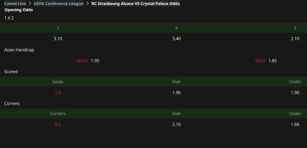UEFA Conference League:Strasbourg vs Crystal Palace Prediction & Betting Tips