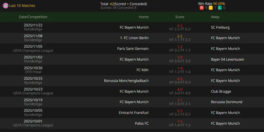 Bayern Munich ended their winning streak in their last match before the international break but bounced back with a resounding victory in the league last weekend, showing even stronger momentum than Arsenal. Defensively, Bayern has appeared somewhat slack in their last two games, conceding two early goals in the previous match before waking up and scoring six consecutive goals to secure a big win. On the bright side, the team’s injury situation is gradually improving. With the return of Kim Min-jae, Hiroki Ito, and others, the defense has become more solid, and the previously worrying squad depth issue seems to have been largely resolved.