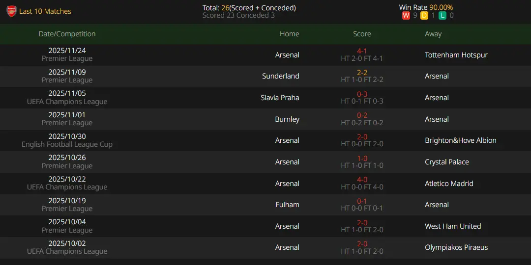 As leaders of their respective leagues and both unbeaten in 4 Champions League group stage games, tonight’s clash is a battle of two top sides. The initial Asian Handicap only opened with Arsenal as -0.25 favorites—understandably, given their incomplete squad and the pressure of facing second-placed Chelsea in a six-point league fixture at the weekend. Bayern has a dominant record against London teams, having already defeated Chelsea at home this season, and players like Harry Kane and Michael Olise are very familiar with Arsenal. Both teams exerted significant energy in their last league matches, but for Arsenal, next week’s league game is more important and difficult, making rotations highly likely tonight. Although Bayern’s next match is sooner, they face less squad pressure and a less demanding schedule. Returning to London away from home should pose no major problems for them. Based on comprehensive data analysis, this match favors Bayern Munich to remain unbeaten away.