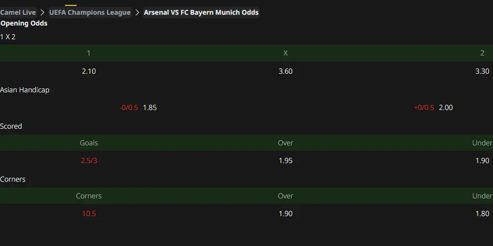UEFA Champions League : Arsenal vs Bayern Munich Prediction & Betting Tips