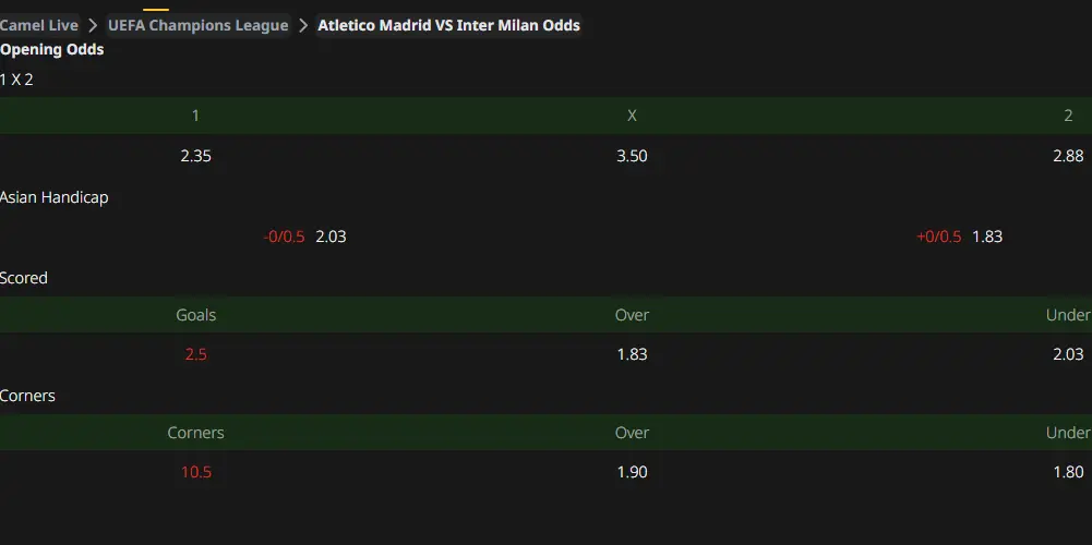 In their last 5 official encounters, Atlético Madrid and Inter Milan have shared the spoils with 2 wins, 1 draw, and 2 losses each. Nevertheless, Atlético has won both of their recent home games against Inter, holding a certain psychological advantage. Their last meeting was in the 2024 Champions League knockout stage, where Atlético won the second leg at home and eventually advanced via penalty shootout. The initial Asian Handicap opened with Atlético Madrid as -0.25 favorites. Both teams are relatively balanced in strength, but Atlético still needs to secure more points to ensure qualification. Based on data analysis, this match recommends supporting Atlético Madrid to win at home.
