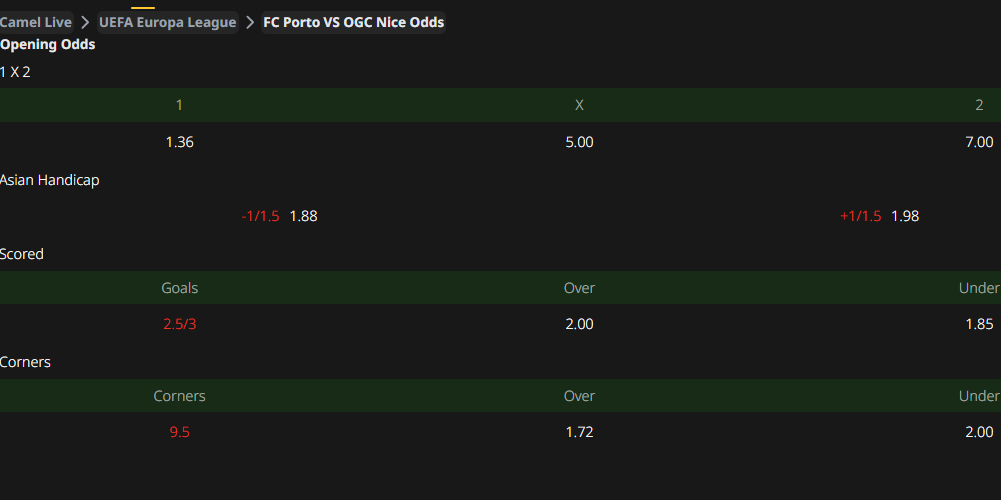 UEFA Europa League : Porto vs Nice Prediction & Betting Tips